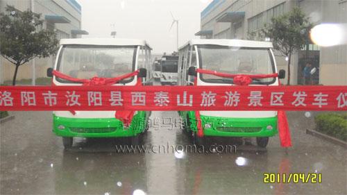 在西泰山燃油觀光車發(fā)車儀式上馬總講到:鴻馬電動(dòng)車經(jīng)過多年的發(fā)展已經(jīng)形成電動(dòng)汽車的產(chǎn)品鏈、日益成熟的生產(chǎn)工藝,能生產(chǎn)多款電動(dòng)汽車、電動(dòng)觀光車、電動(dòng)警車、電動(dòng)警務(wù)室、移動(dòng)警務(wù)室、電動(dòng)消防車、電動(dòng)物流車、電動(dòng)客車貨車等多款設(shè)計(jì)新穎、創(chuàng)意獨(dú)特、低碳環(huán)保的“綠色”電動(dòng)車。鴻馬燃油觀光車曾被河南新鄉(xiāng)回龍景區(qū)和山路盤旋的、坡度陡峭、峰回路轉(zhuǎn)的洛陽龍?zhí)洞髰{谷等紛紛訂購。