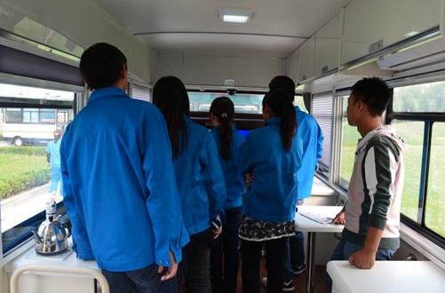 學(xué)生在參觀公司產(chǎn)品流動(dòng)警務(wù)室