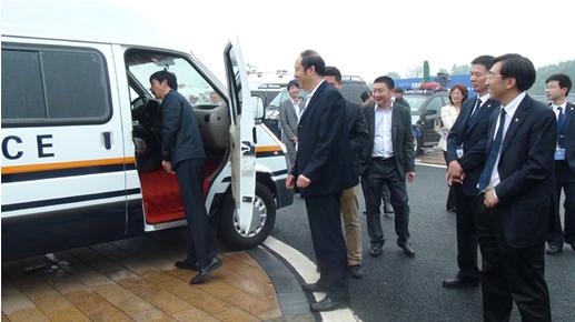 2012年10月29日上午,由公安部警用裝備采購中心主辦的2012最新警用車輛集中采購展示推介會在江西南昌紅谷灘隆重舉行,本次推介會共有28家警用產(chǎn)品企業(yè)參展,公安部警用裝備采購中心王強(qiáng)主任等有關(guān)領(lǐng)導(dǎo)參加此次會議。鴻馬電動(dòng)汽車公司攜3款新型產(chǎn)品(4.5米電動(dòng)流動(dòng)警務(wù)室、6米燃油流動(dòng)警務(wù)室、5.5米改裝流動(dòng)警務(wù)室)亮相,其亮麗、恢弘的外觀獨(dú)樹一幟,成為此次推介會一道亮麗的風(fēng)“警”線,在本次推介會上大放異彩。