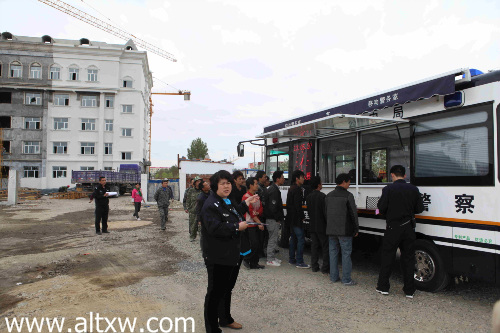 布爾津縣公安局治安大隊教導員周莉說:“我們今天利用我們的移動警務室來到這個工地,主要是為了更好的宣傳流動人口管理辦法以及居住證管理辦法,更貼近地關心流動人口,為他們更好的服務,讓他們這里足不出戶的就能領上居住證并且辦理居住證!