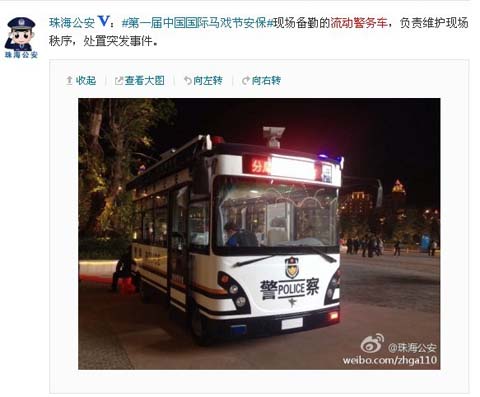 廣東珠海:鴻馬移動(dòng)警務(wù)室為“第一屆中國國際馬戲節(jié)”保駕護(hù)航