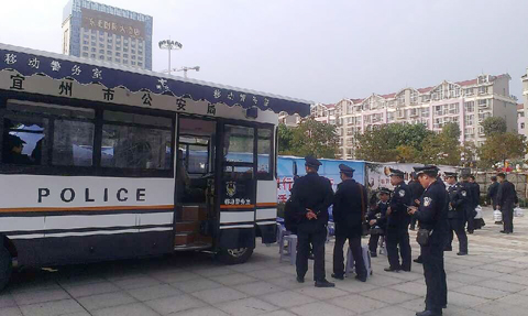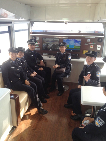 宜州市公安局工作人員在移動(dòng)警務(wù)室上辦公