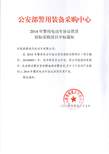 2014公安部警用電動車協(xié)議供貨采購項目中標(biāo)通知