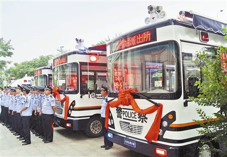 天津公安紅橋分局新購置了3臺鴻馬移動警務室,用于重點部位、繁華地區(qū)的反恐防范、震懾犯罪、服務群眾等工作。移動警務室是集打擊、防范、管理、服務等多功能為一體的現(xiàn)代化警用裝備,配有紅外攝像頭、車載電腦、攝像機、監(jiān)控顯示器等設施。