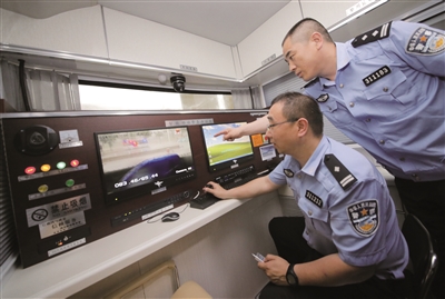 圖為民警在操作移動警務室