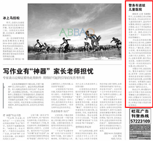 北京晨報(bào)報(bào)道:北京市多功能鴻馬移動(dòng)警務(wù)室進(jìn)駐兒童醫(yī)院