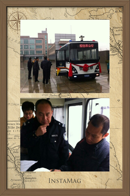 1月23日,在山東招遠(yuǎn)市公安局舉行鴻馬移動警務(wù)室交車儀式。