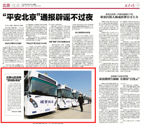 北京日報:北京石景山區(qū)啟用鴻馬“城管執(zhí)法站”