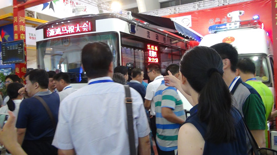 鴻馬展臺(tái)參觀代表爭(zhēng)相參觀鴻馬流動(dòng)檢察室