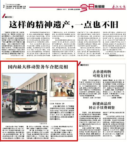 合肥晚報(bào):全國(guó)最大多功能移動(dòng)警務(wù)車亮相合肥