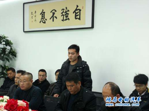 鴻馬電動(dòng)汽車總經(jīng)理馬鴻軍先生率先在大會(huì)上進(jìn)行了重要講話,他非?陀^地對(duì)公司各項(xiàng)重要工作一一進(jìn)行了總結(jié)和分析,并對(duì)存在的問題提出了解決的方案;在會(huì)議上還講述了對(duì)電動(dòng)汽車、流動(dòng)警務(wù)室市場(chǎng)前程的看好和信心,并自始至終地堅(jiān)定著公司的發(fā)展和目標(biāo)?偨(jīng)理把會(huì)議的氣氛都推到了高潮。