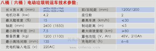 電動垃圾收集車技術(shù)參數(shù):